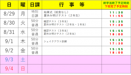 8/29(月)からの予定