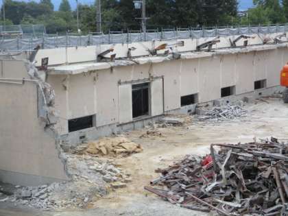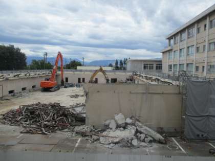 旧体育館の解体工事が進んでいます。写真は現在の様子です。跡地には駐車場が設けられる予定です。