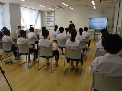 5限、会議室から各教室へのライブ配信の形で整形外科医による講演会を行いました。講師は根塚整形外科・スポーツクリニックの 根塚 武 先生です。会議室には各運動部から代表が集まり、直接先生の話を聞きました。