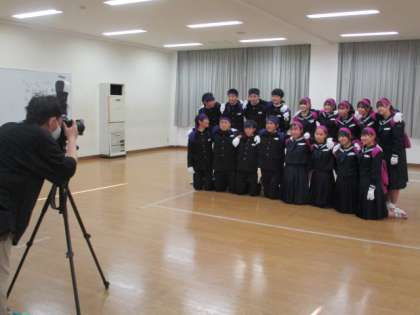 今日の放課後も3年生の卒業アルバムの写真撮影を行いました。写真は上段から応援団、科学部、水泳部です。