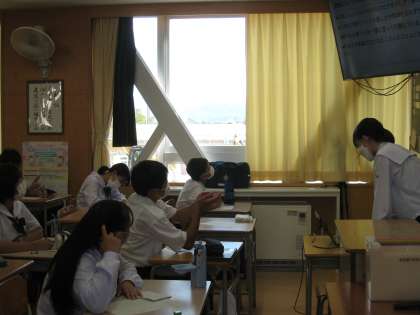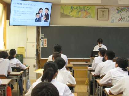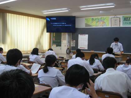 6日の6限に、「社会に学ぶ『14歳の挑戦』」での活動の発表会を行いました。各クラス、自分の体験をスライドにまとめて発表します。