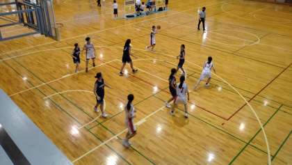 女子バスケットボール部が準々決勝の芝園中学校戦に臨み、60対10で勝利です。