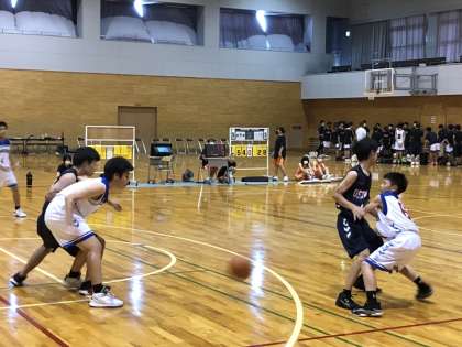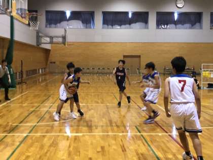 男子バスケットボール部が準々決勝の大沢野中学校戦に臨み、73対40で勝利です。