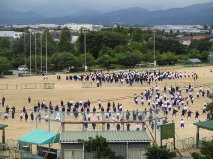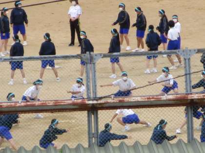 4限の団別活動の様子です。昨日、雨でできなかった屋外での練習を行いました。