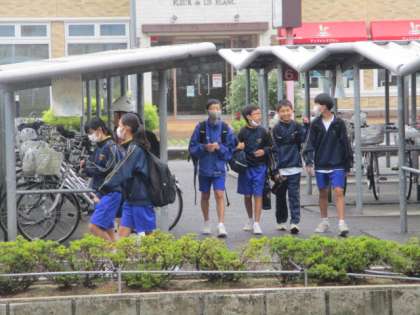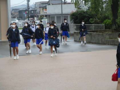 今日は冨山市統一学校公開日です。給食・部活動はありません。本日の下校完了時間は12:45です。