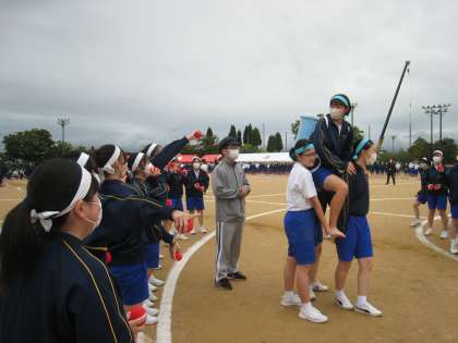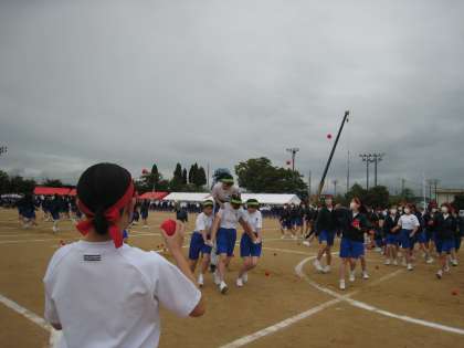 3年生も予行で予選を行いました。玉入れと騎馬戦を合わたような種目です。