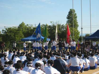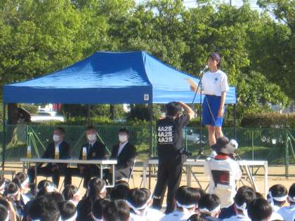 いよいよ大会の始まりです。開会宣言の後、優勝旗、優勝杯返還、開会のあいさつ、選手宣誓が行われました。