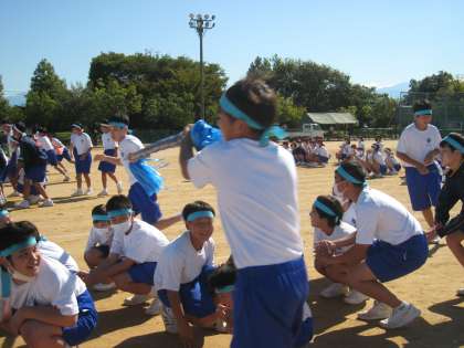 回転する地点では4人の息をしっかり合わせることが大切です。