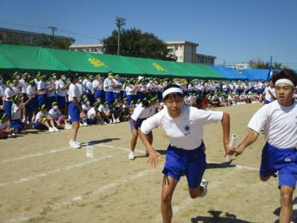 いよいよ最後の種目団別リレーです。各団各学年の中から選ばれた精鋭たちが、1位を目指してバトンをつなぎます。