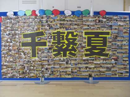 玄関前の掲示板には、7月の団結成から体育大会までの実行委員、団リーダー、速中生の取組の写真で埋め尽くされています。笑顔がいっぱいです。