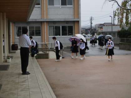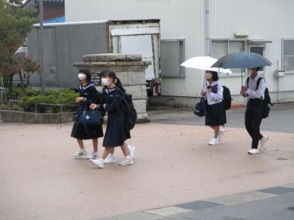 今日は登校時に久しぶりに雨になりました。気温が低くなる予報が出ていたためか冬服で登校する生徒が多く見られました。