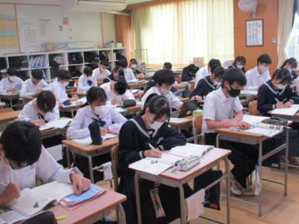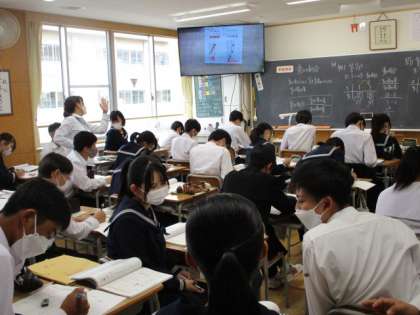3限、3年生の授業の様子です。写真は上から31H数学、32H国語、33H数学です。