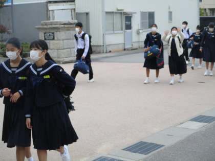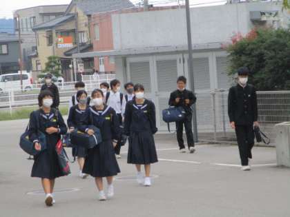 今朝は登校時、曇りになりました。今日は中間考査2日目です。今日から部活動が再開します。