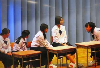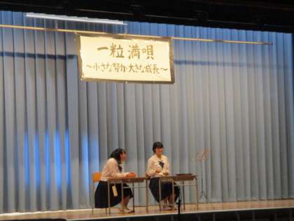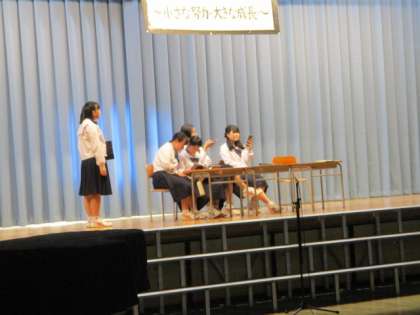 最後は演劇部による演劇です。題目は「暗い歌によせて」でした。部活動の取組に悩みながらも成長していく生徒の姿が描かれました。作品への思いがしっかり伝わってきました。