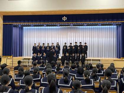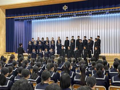 先日、合唱コンクールのリハーサルが行われました。初めてのステージでは、思ったより声が届かず、教室に帰って反省会をしました。後もう少しですが、まだまだあきらめず頑張ります。