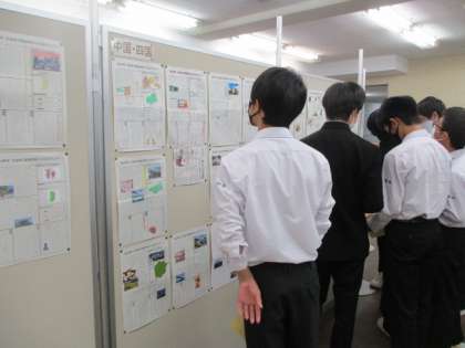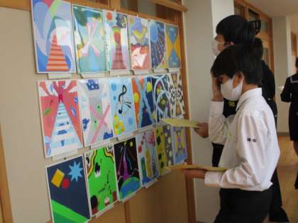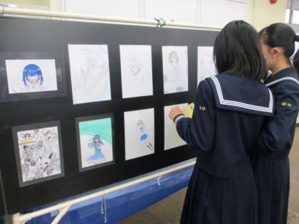教室前や多目的ホールを使って、生徒の作品展示を行いました。美術や社会科、理科の自由研究に加え、部活動で制作した作品等が数多く展示されました。