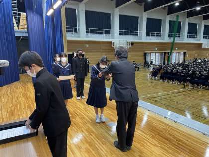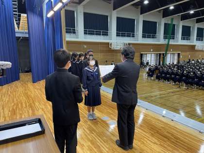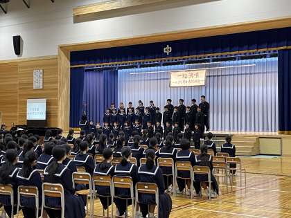 全クラスの合唱が終わり、審査の結果が発表されました。結果は優秀賞13H、優良賞11H、努力賞15Hとなりました。どのクラスもめいいっぱい力を出し切りました。