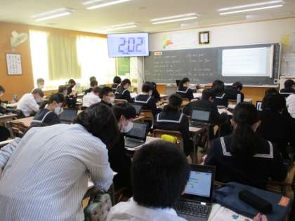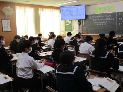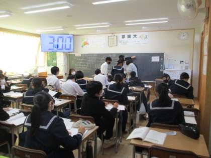 5限の2年生の授業の様子です。写真は上から21H英語、22H数学、23H国語です。