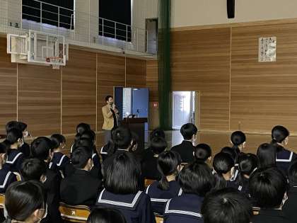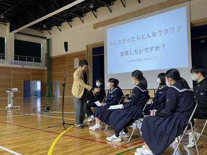 代表の生徒たちが、調べた知識をもとに中谷さんと初のディスカッションに挑戦しました。多くの生徒が挙手し、積極的に参加しようとしていました。県外出身者である中谷さんとのディスカッションを通して富山の新たな魅力に気付くことができる時間となりました。最後に、みんなで未来の富山のまちを考えました。