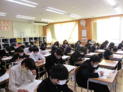 全学年1〜3限は中教研学力調査を行いました。2限の様子です。写真は上から13H、25H、36Hです。