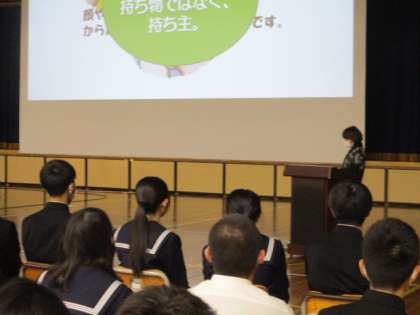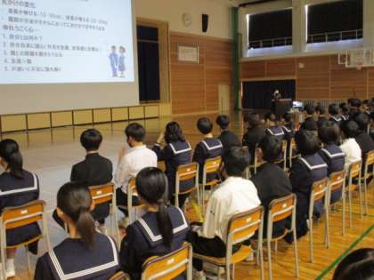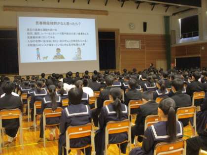 5、6限に2年生を対象にした産婦人科医による講演会(性に関する学習)を実施しました。吉本レディースクリニックの吉本裕子先生をお招きし、思春期の心と体の変化等の話を聴きました。性に関して正しい知識を身に付けることの大切さを知ることができました。