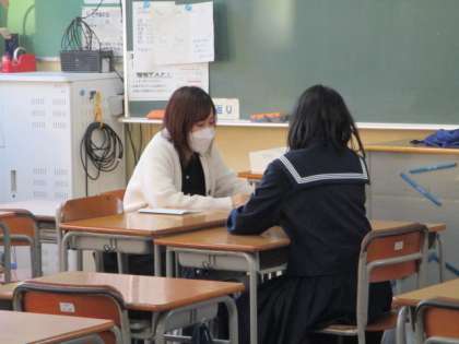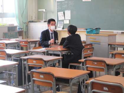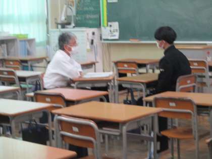 今日から2学期の教育相談週間が始まりました。放課後を中心に担任の先生が、クラスの生徒一人一人と面談します。写真は1年生の様子です。