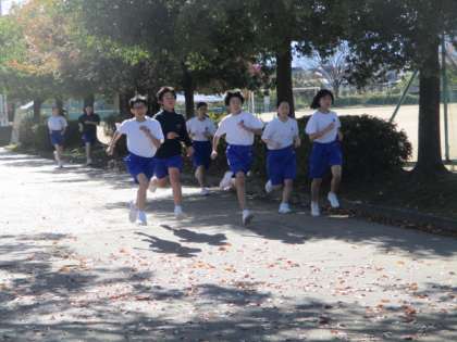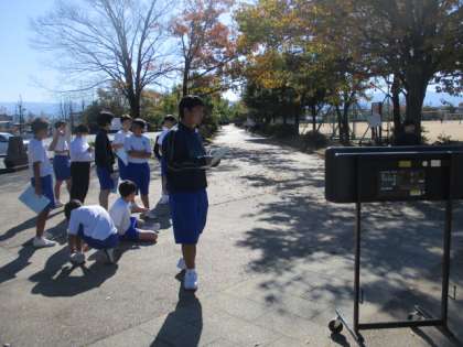 3限、28・29Hの体育の授業の様子です。男女ともに持久走を行っています。男子はスポーツプラザの外周620mを3周します。生徒は全力を出しきって走っている様子でした。
