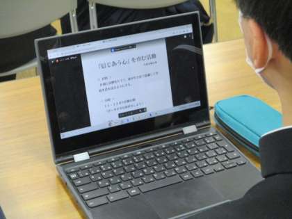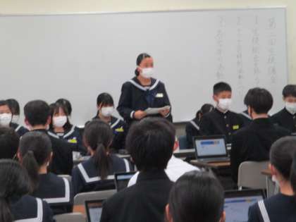 放課後、A多目的ホールで第2回の生徒議会を行いました。執行部、実践委員長から12月の活動計画について、また、学年生徒会からは各学年の活動について説明がありました。