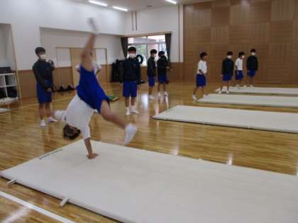 4限11Hの体育はマット運動でした。まだ始まったばかりですが、今後練習して徐々に上達していくと思います。