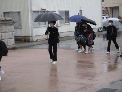 今朝は登校時、雨になりました。気温も低く寒く感じました。本日の下校完了時間は17:00です。