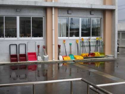 今朝は登校時、雨になりました。寒さも進み、除雪用具も準備されています。本日の下校完了時間は16:00です。