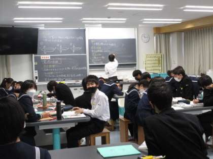 2年生の3限の授業の様子です。写真は上から21H英語、22H理科、23H理科です。