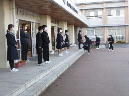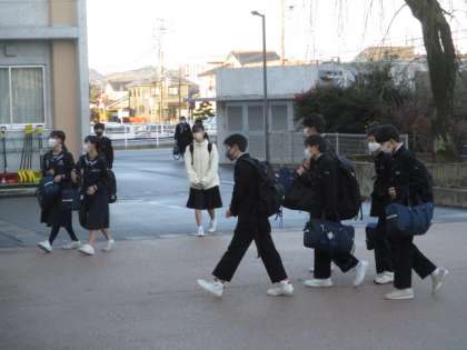 今日の登校時は晴れて、日差しが気持ちよく感じました。本日の下校完了時間は16:30です。