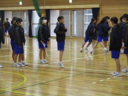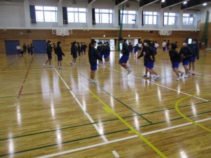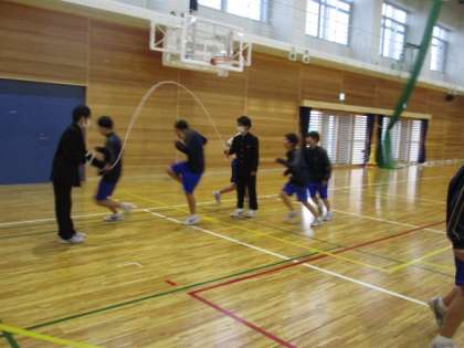 3限、18Hの授業の様子です。長めの縄を回す中に5人が列をつくって順に跳んでいきます。とても楽しそうでした。