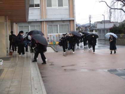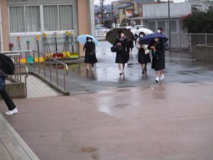 今朝の登校時は雨になりました。今朝も気温が低くなりました。本日の下校完了時間は17:30です。