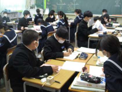 1年生、3限の授業の様子です。写真は上から11H数学、12H国語、13H数学です。