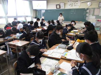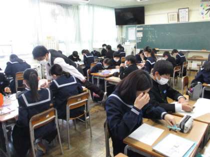 同じく17H数学、18H国語、19H理科です。国語の時間は書初めの練習をしています。落ち着いて取り組む姿が見られました。