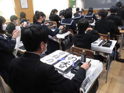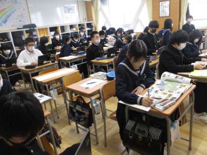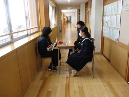 2年生、3限の授業の様子です。写真は上から21H美術、22H英語、23H国語です。英語は先生と英会話でコミュニケーションをとっています。