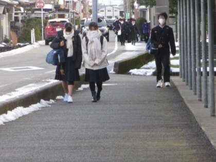 今朝は気温が低く、路面に残った雪も凍っていました。今日は保護者懇談会の最終日です。本日の下校完了時間は15:00です。