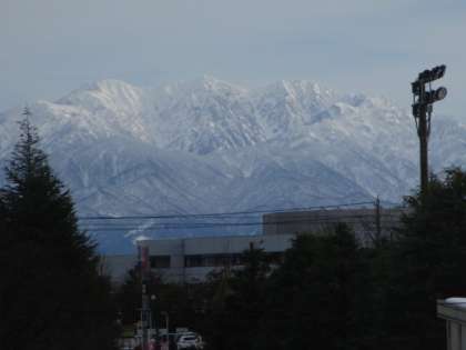 今日は校舎から雪化粧した立山連峰が美しく見えました。