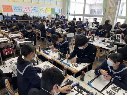 本日1限目に、書き初めの練習を行いました。生徒たちは、お手本を見ながら集中して、一文字一文字丁寧に書いていました。3学期の書き初め大会が楽しみです。