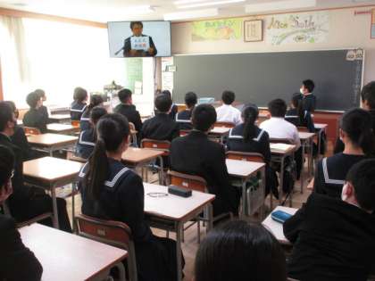 終業式は校訓唱和リーダーによる校訓唱和の後、校長先生の式辞がありました。式辞では今学期を振り返りながら「人と人との交流」の大切さについて述べられました。
