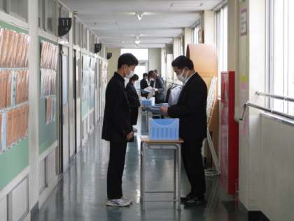 終業式の後の学活では担任の先生から一人一人に通知表が渡されました。