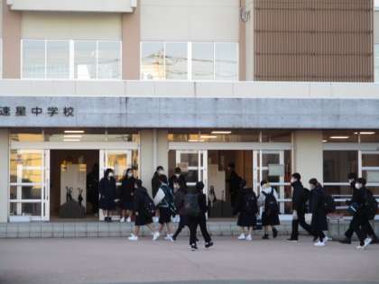登校時は晴れてよい天気になりましたが気温は低くなりました。今日は1、2年生が冬休み明けテストを行います。本日の下校完了時間は17:30です。