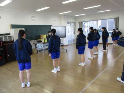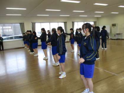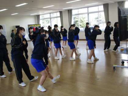 3限、26・27Hの女子の体育の様子です。A多目的ホールでダンスの練習をしています。修正を加えながら理想のダンスに近づけます。発表が楽しみです。