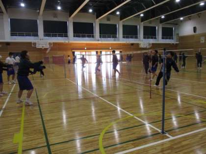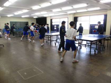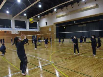 3限、32・33Hの体育の様子です。男子は卓球とバドミントン、女子はバレーボールを行っています。寒いですが半袖で頑張っている生徒も見られました。
