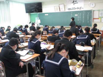 1年生3限の授業の様子です。写真は上から11H体育、12H国語、13H社会です。体育は柔道の受け身を練習していました。