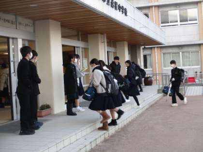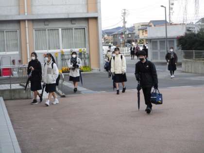 今朝の登校時は時折晴れ間も見えましたが、午後からは降雪が予想されています。本日の下校完了時間は17:00です。