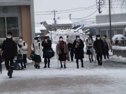 今朝の登校時は曇りになりました。雪は少し落ち着いたようですが、今夜からまた大雪が予想されています。本日の下校完了時間は17:30です。