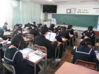 本日4限に、来年度の「14歳の挑戦」に向けて、仕事をするにあたり必要なことは何かを考えました。タブレットパソコンのジャムボートやクラゲチャートを用いて活発に意見を書いたり、話し合ったりしながら考えました。最後には、書記が準備してくれた記述用紙に、仕事に必要な力に加えて、これからの中学校生活をどのように過ごしていきたいかを書きました。書いたことを実行し、必要な力を身に付けていきましょう。